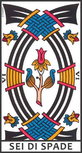 Nei Tarocchi Minori, i Sei mostrano la guarigione che segue alla crisi, la bellezza che fiorisce dal superamento della prova, il fluire più armonico dell’energia in ciascun elemento.